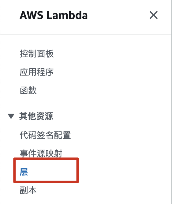 通过添加「层」,可以将第三方库打包添加进去。下面先打包第三方库。