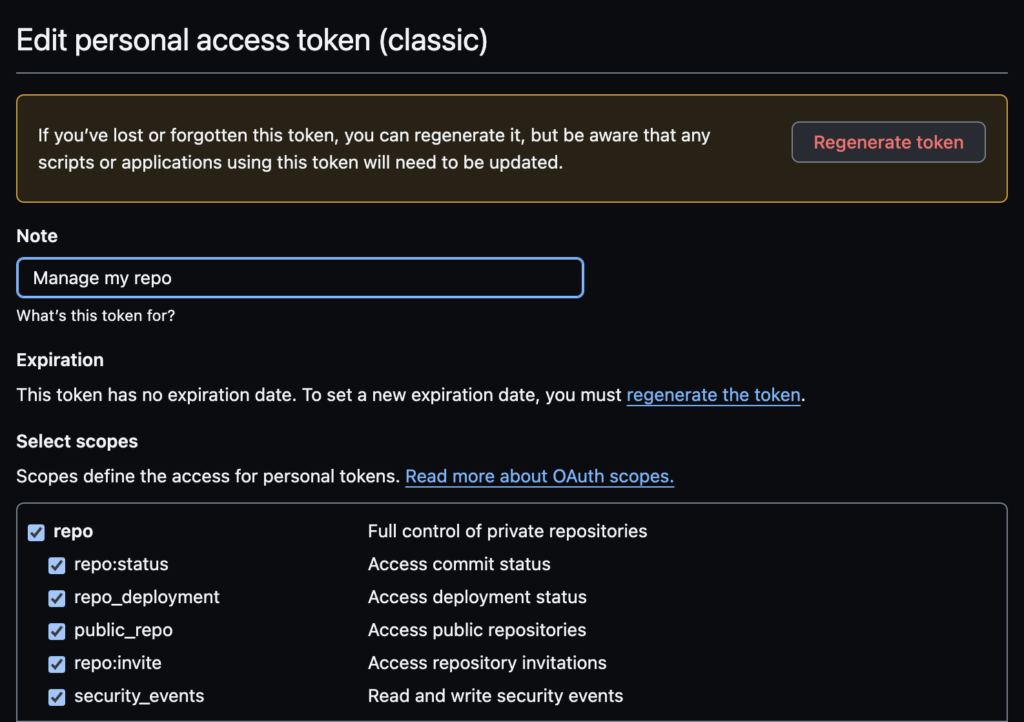 为通过GitHub REST API修改仓库名,需要搞一个token用来鉴权。此处前往token申请页面